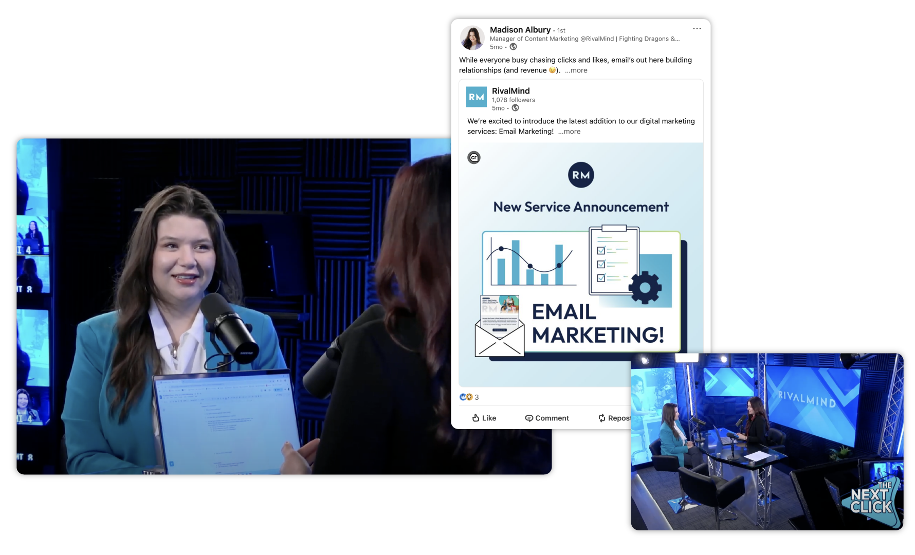 Madison regularly brings her content expertise to the mic as a featured guest on RivalMind’s podcast series. With a natural ease and vibrant energy, she joins the host for candid conversations that explore the evolving landscape of content strategy, what’s changing, what’s working, and where creativity meets clarity. She breaks down the mechanics of message hierarchy and the subtle art of making words on a page feel just right, helping listeners understand how to craft content that’s both meaningful and visually compelling.