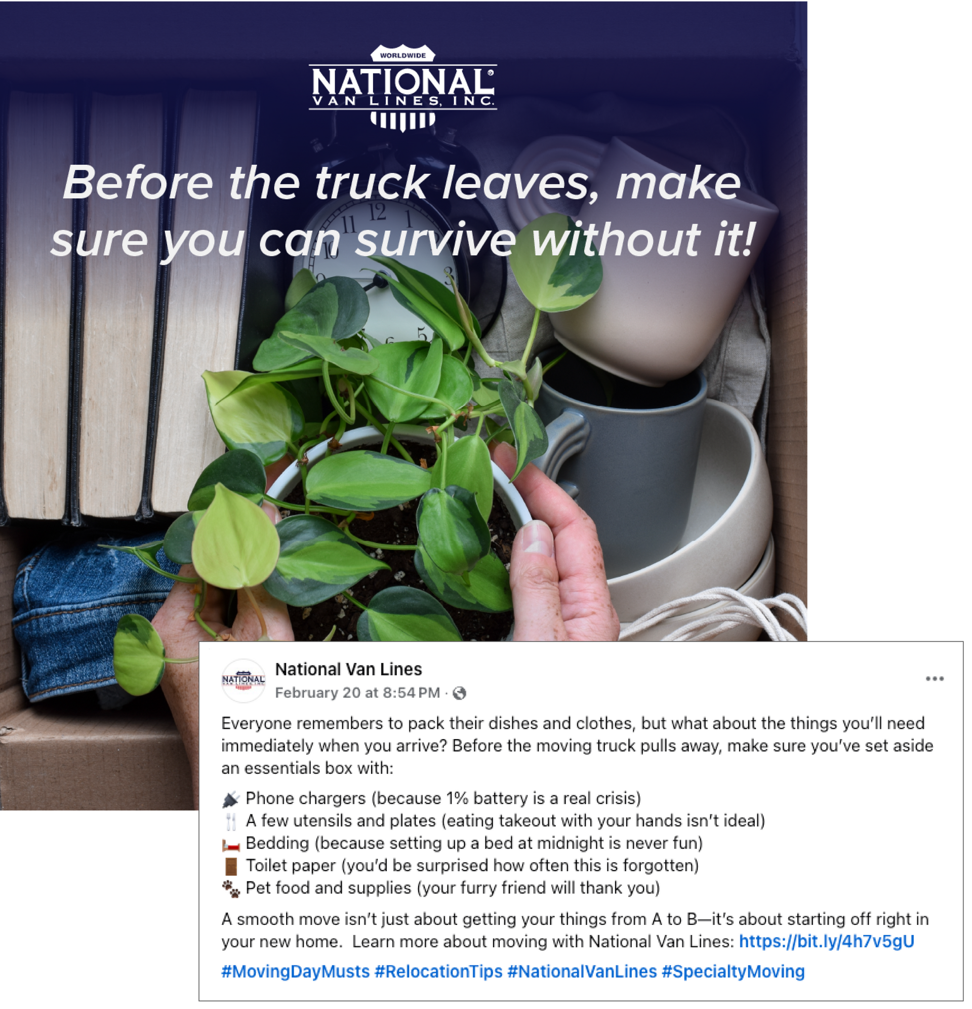 National Van Lines has been helping people move for nearly a century, from across the country to around the world. Their name carries weight. Their trucks get the job done. But when it came to social media, their presence didn’t match the power of their reputation.