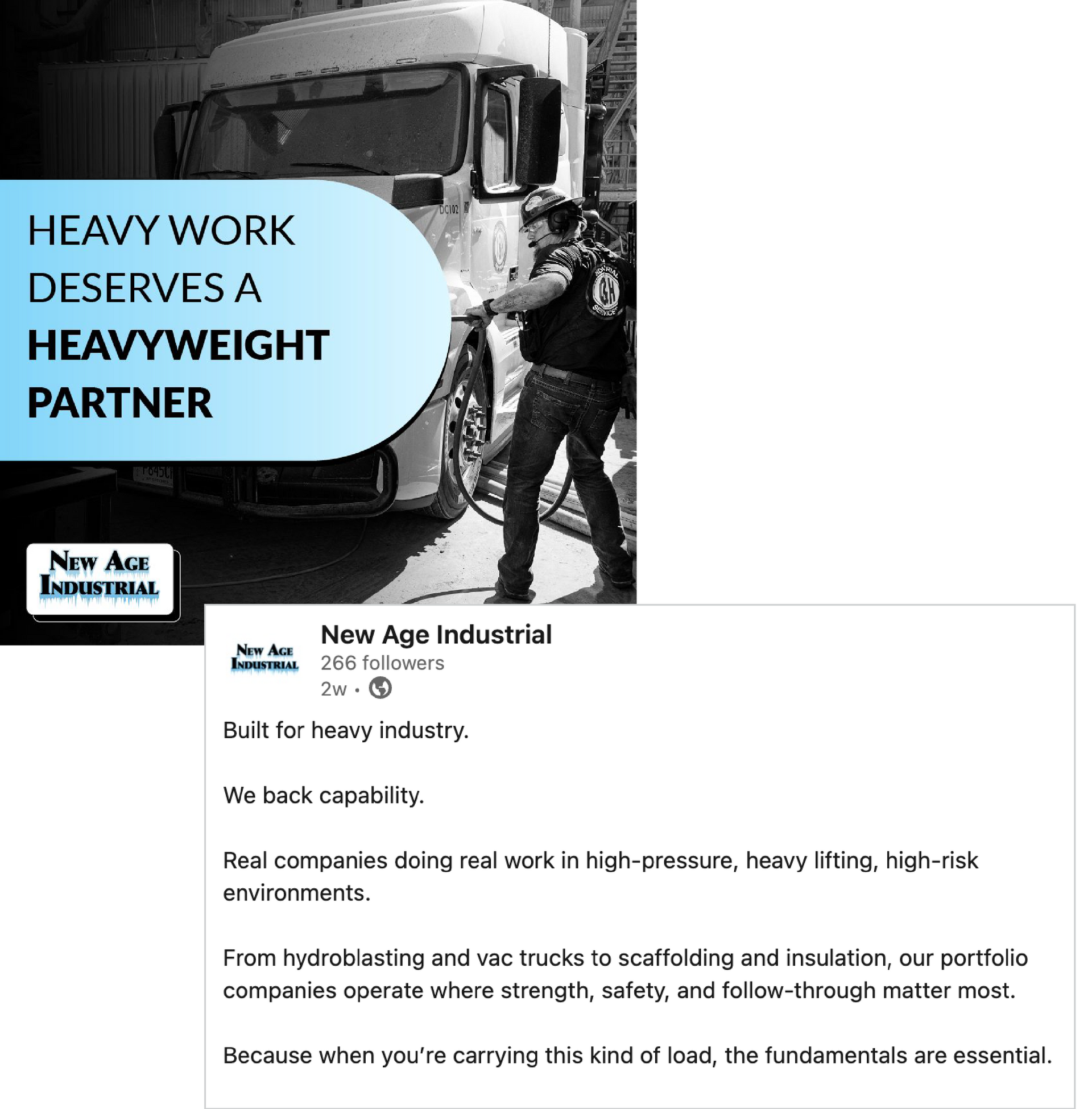 New Age Industrial isn’t your typical industrial services company. They’re a behind-the-scenes powerhouse, acquiring and supporting the businesses that keep the country running. From heavy equipment to high-efficiency operations, they help build bigger outcomes by investing in companies that do essential work and do it well.