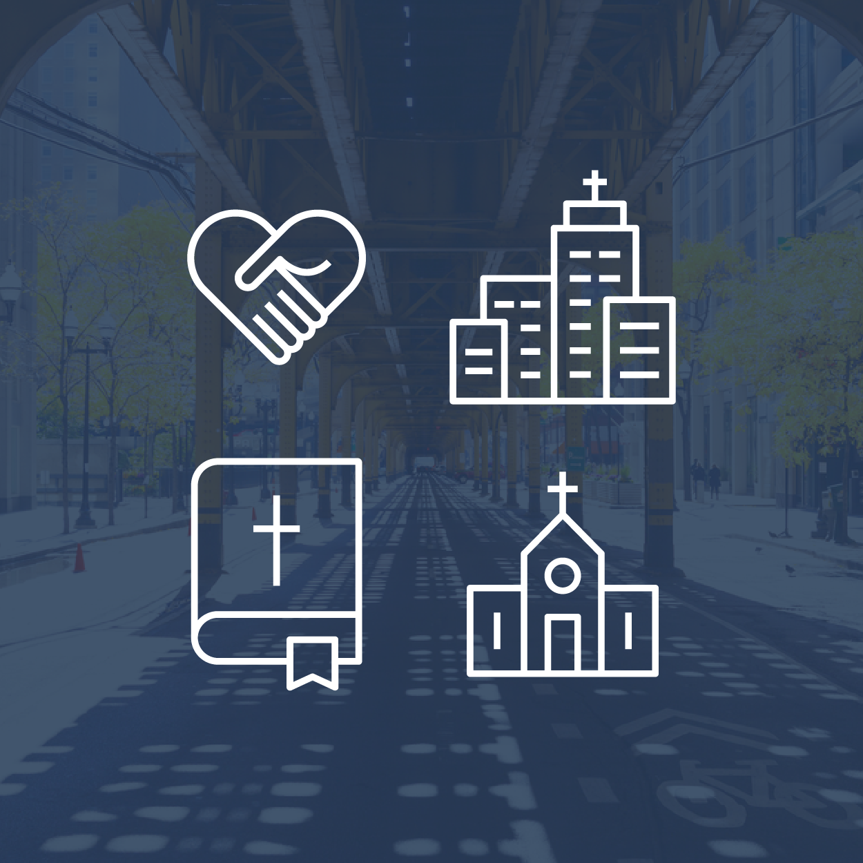 Pulling from the blue skies and clear Lake Michigan water of Chicago, we crafted a muted complementary color palette that speaks to the modernity and gentleness that the church prioritizes.