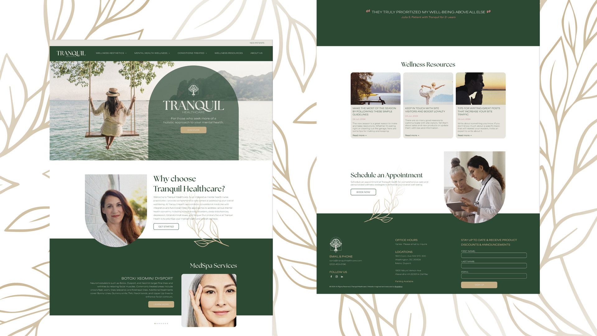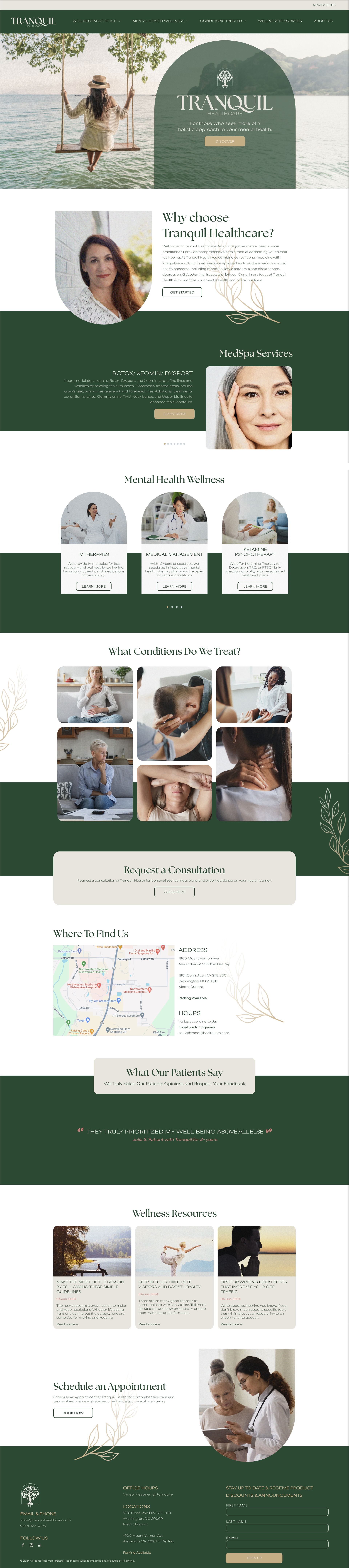 The new website includes the elegance she envisioned, while seamlessly blending a sense of calm with dynamic visual appeal. Website visitors now feel welcome and find an intuitive path to explore services in a serene environment that perfectly encapsulates what Tranquil Health Care offers.